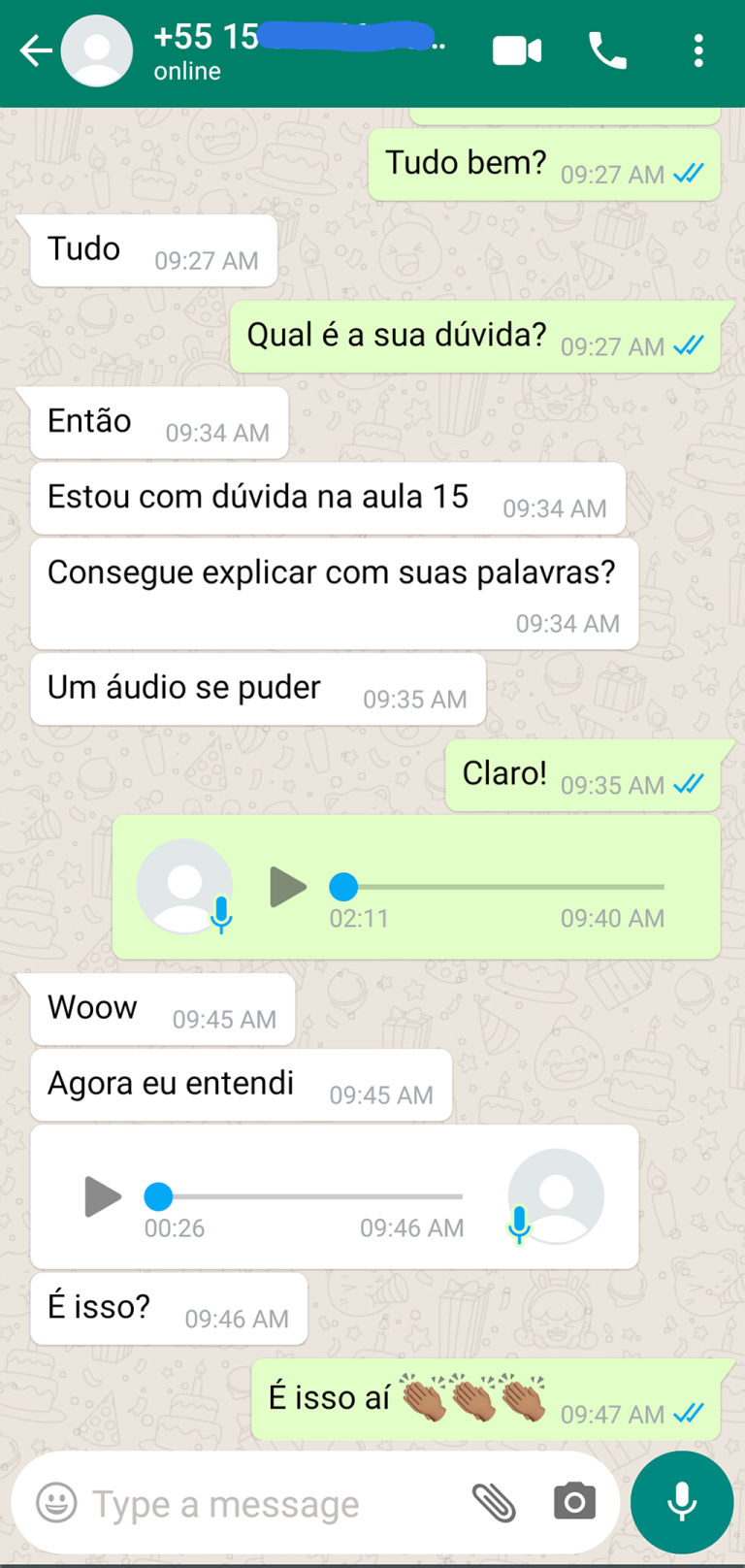 No bônus Mentor Particular, você terá acesso ao meu número pessoal para tirar dúvidas diretamente comigo.